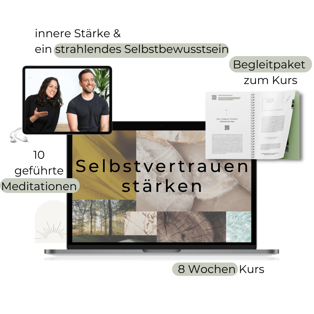 Passend zum Kurs schicken wir dir dein umfangreiches Begleitbuch direkt zu dir nach Hause. Dort findest du noch einmal alle Inhalte des Kurses zusammengefasst – zum Nachlesen, Vertiefen und immer wieder anschauen. Außerdem findest du darin spannende Reflexionsfragen und viel Platz für deine Notizen.